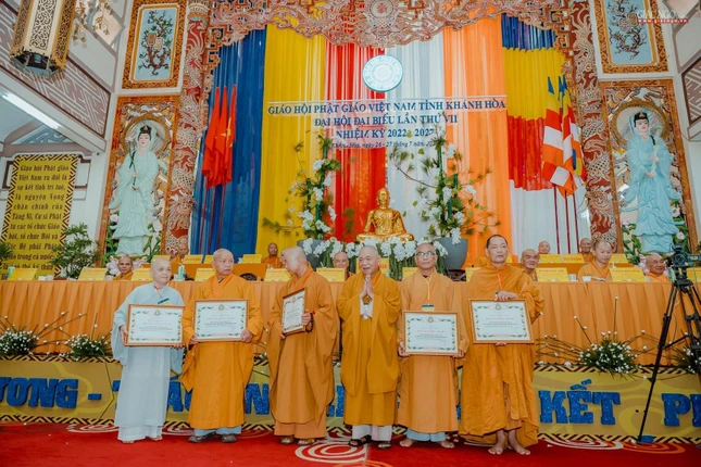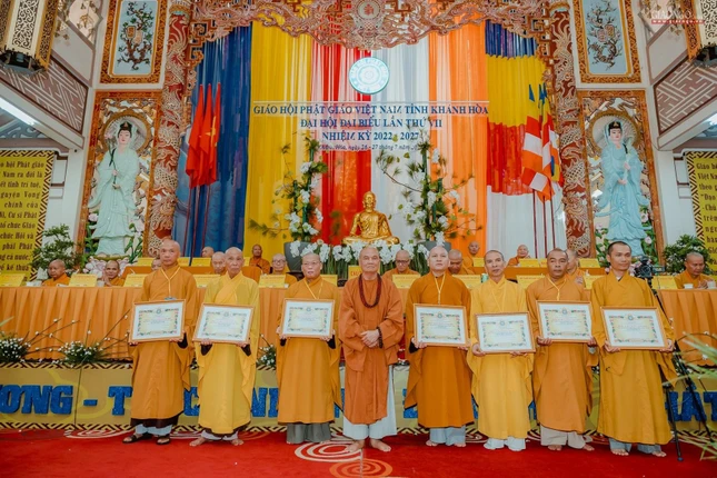 Nhân dịp này, Trung ương Giáo hội đã trao tặng Bằng tuyên công đức cho 15 tập thể và 6 cá nhân thuộc Phật giáo tỉnh Khánh Hoà.