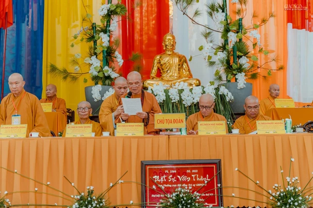 Thay mặt Ban Chứng minh, Hoà thượng Chủ tịch Hội đồng Trị sự lấy biểu quyết. Toàn thể đại biểu nhất trí thông qua nhân sự Ban Trị sự GHPGVN tỉnh Khánh Hoà nhiệm kỳ VII (2022-2027) gồm 63 thành viên.