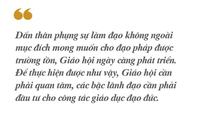 Dấn thân phụng sự làm đạo không ngoài mục đích mong muốn cho đạo pháp được trường tồn, Giáo hội ngày càng phát triển. Để thực hiện được như vậy, Giáo hội cần phải quan tâm, các bậc lãnh đạo cần phải đầu tư cho công tác giáo dục đạo đức.