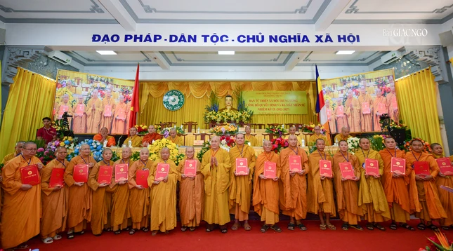 Tại buổi lễ, Ban Tổ chức đã trao tặng khánh vàng tri ân chư tôn đức hoàn thành xuất sắc công tác Phật sự Ban Từ thiện xã hội T.Ư nhiệm kỳ VIII.