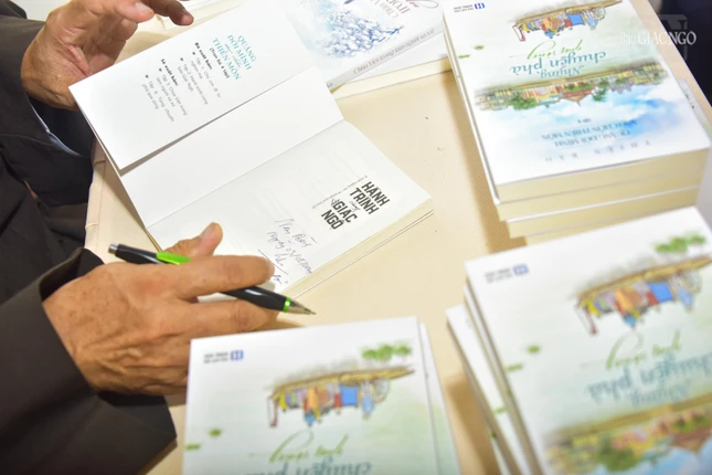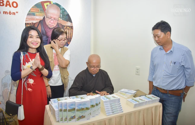 Dịp này, Hòa thượng Thích Thiện Bảo cũng dành thời gian ký tặng sách đến đông đảo người yêu sách tham dự buổi giao lưu.