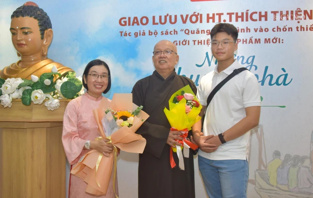 GNO - Sáng 3-8, đông đảo người yêu sách đã về trụ sở tòa soạn Báo Giác Ngộ (85 Nguyễn Đình Chiểu, Q.3, TP.HCM) tham dự buổi giao lưu, giới thiệu tác phẩm mới "Những chuyến phà qua sông", tập 4 trong bộ sách "Quăng đời mình vào chốn thiền môn" của Hòa thượng Thích Thiện Bảo, do Báo Giác Ngộ tổ chức.