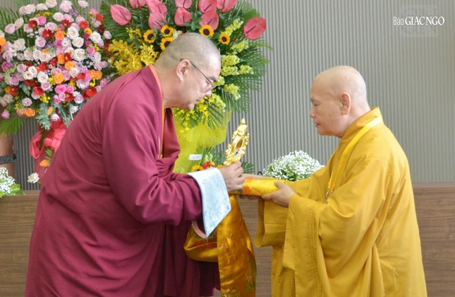 Hoà thượng Chủ tịch Hội đồng Trị sự thay mặt GHPGVN phát biểu chào mừng quý đại biểu tham dự, đồng thời đánh giá cao vai trò lịch sử của ABCP đối với lịch sử truyền bá Chánh pháp.