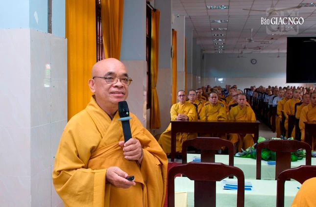 Ngài nhấn mạnh tầm quan trọng của việc học và tu song hành, qua kinh nghiệm của hệ thống Phật học viện của Phật giáo VN từ thời chấn hưng và đặc thù giáo dục đào tạo Phật giáo. "Ngoài việc được đào sâu về mảng tri thức, Tăng Ni sinh còn được rèn luyện các kỹ năng cần thiết, khép mình trong khuôn khổ thiền môn và thực tập pháp tu trong đời sống sinh hoạt nội trú tại Học viện.", Đại lão Hòa thượng nhắc nhở.