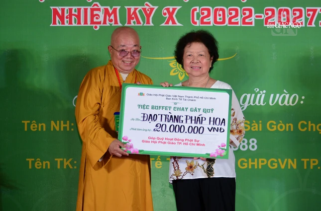 Được biết, buffet chay gây quỹ hoạt động Phật sự của Giáo hội TP.HCM được sự ủng hộ của gần 2.000 Tăng Ni, Phật tử, mạnh thường quân, doanh nghiệp. Ban Tổ chức cũng được sự ủng hộ về thực đơn gần 100 món ăn và thức uống của các ban chuyên môn trực thuộc Ban Trị sự TP.HCM, Ban Trị sự GHPGVN TP.Thủ Đức, các quận huyện, các tự viện, Phật tử đạo tràng Pháp Hoa.