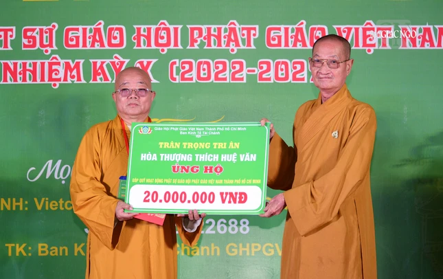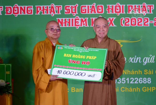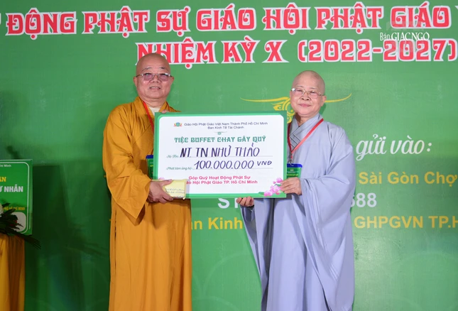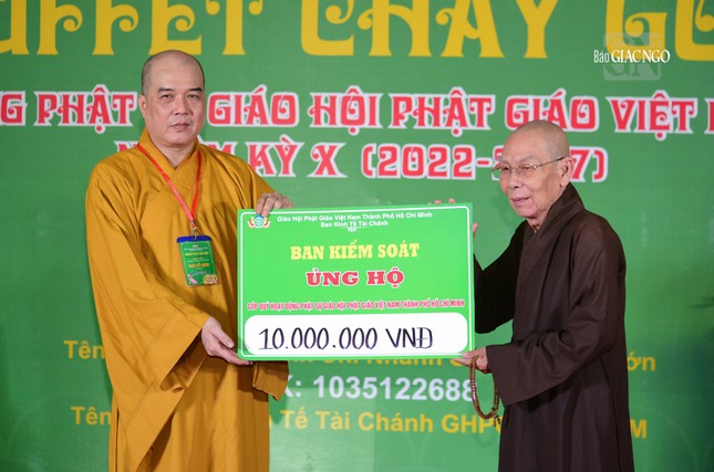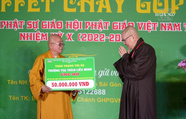 Tại chương trình, Ban Tổ chức đã trao bảng 200 triệu đồng đến Ban Trị sự GHPGVN TP.HCM để cúng dường niêm liễm đến TƯGH năm 2023.