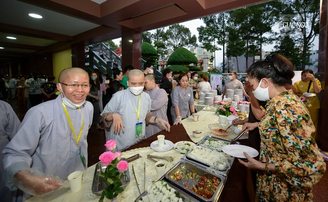 Hiện diện chứng minh, tham dự có Hòa thượng Thích Huệ Văn, Thành viên Hội đồng Chứng minh, cố vấn Ban Trị sự GHPGVN TP.HCM; Hòa thượng Thích Lệ Trang, Ủy viên Thường trực Hội đồng Trị sự, Trưởng ban Trị sự GHPGVN TP.HCM; chư vị Phó Trưởng ban Trị sự: Hòa thượng Thích Thiện Đức, Hòa thượng Thích Nhật Hỷ, Thượng tọa Thích Thiện Quý (kiêm Chánh Thư ký), Thượng tọa Thích Quang Thạnh; Thượng tọa Thích Trung Nguyện, Phó Thư ký kiêm Chánh Văn phòng Ban Trị sự TP; Đại đức Thích Trí Đức, Phó Thư ký Ban Trị sự TP; Thượng tọa Thích Truyền Cường, Ủy viên Thường trực kiêm Trưởng ban Kinh tế-Tài chính GHPGVN TP.HCM, Trưởng ban Tổ chức, chư tôn đức Ban Thường trực Ban Trị sự TP, các ban chuyên môn trực thuộc, Ban Trị sự TP.Thủ Đức, 21 quận huyện; Ni trưởng Thích nữ Từ Nhẫn, Trưởng Phân ban Ni giới TP.HCM, Ni trưởng Thích nữ Như Thảo, Ủy viên Thường trực kiêm Phó Thường trực Phân ban Ni giới TP, cùng Tăng Ni các tự viện, gần 2.000 Phật tử, mạnh thường quân, doanh nghiệp tham dự buffet chay.
