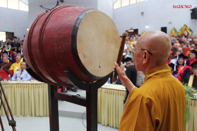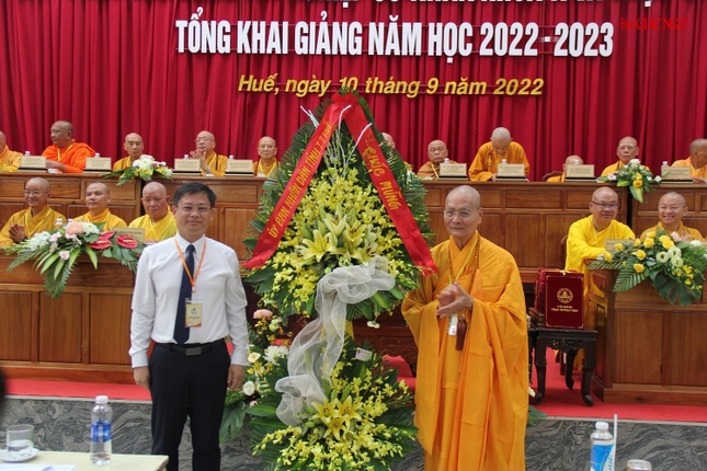 Sau lễ chào Quốc kỳ, Đạo kỳ và phút tưởng niệm Trưởng lão Hòa thượng Thích Thiện Siêu - Viện trưởng sáng lập, Hòa thượng Thích Chơn Thiện – nguyên Viện trưởng cùng chư vị hữu công, Hòa thượng Thích Hải Ấn, Viện trưởng đương nhiệm Học viện PGVN tại Huế phát biểu khai mạc.