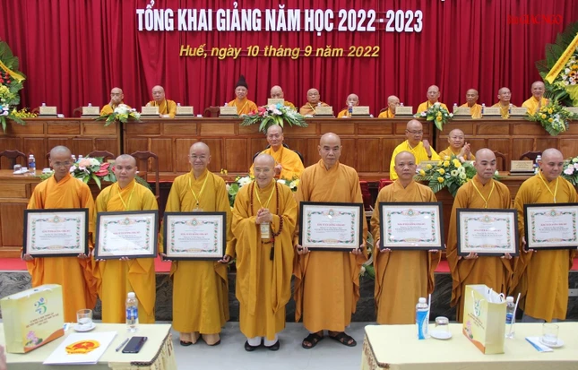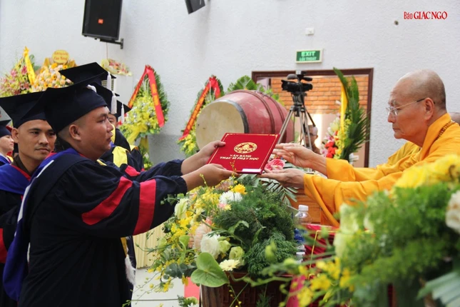 Dịp này, Học viện cũng tổ chức lễ tốt nghiệp, cấp phát bằng Cử nhân Phật học khóa X (2018-2022), Thạc sĩ Phật học khóa I và tổng khai giảng năm học 2022-2023.