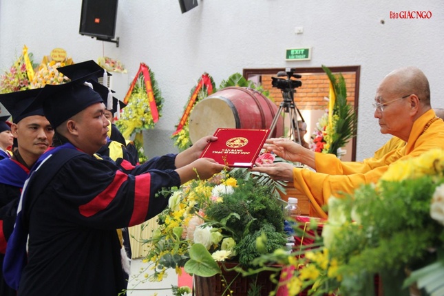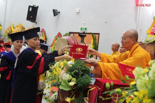 Tại buổi lễ, Thượng tọa Thích Nguyên Thành, Phó Viện trưởng đã đọc quyết định công nhận Tăng Ni sinh viên khóa X và Thạc sĩ khóa I tốt nghiệp. Sau đó, Hòa thượng Viện trưởng đã trực tiếp trao văn bằng Cử nhân và Thạc sĩ Phật học đến các tân cử nhân và học viên Thạc sĩ.