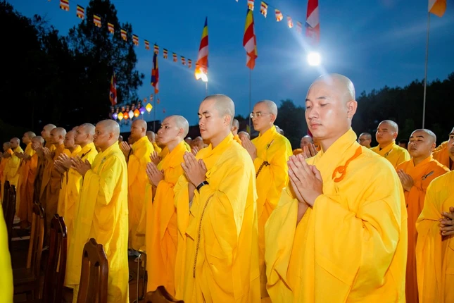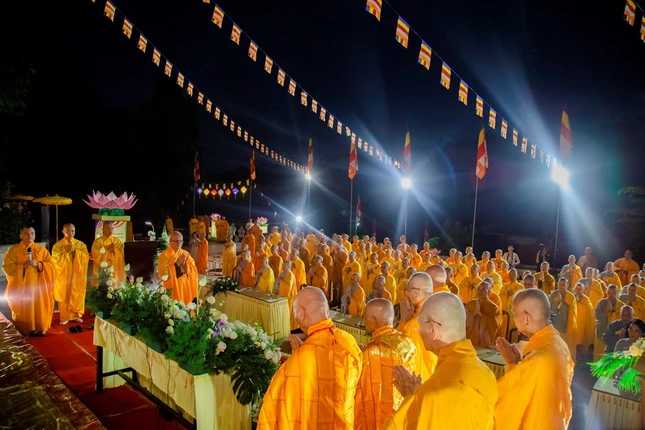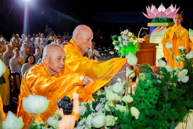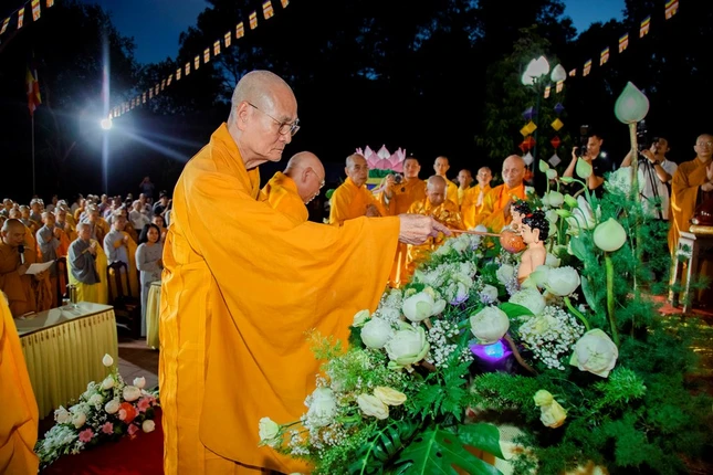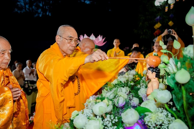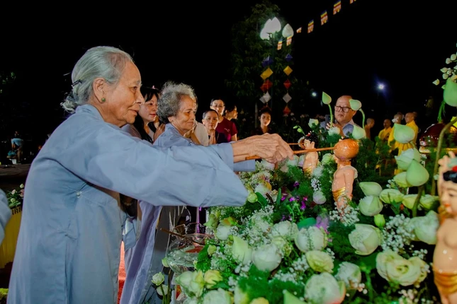 Hòa trong không khí thành kính, toàn thể hội chúng nhất tâm tụng sám Khánh đản và cử hành nghi thức Mộc dục truyền thống.