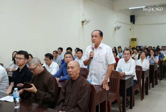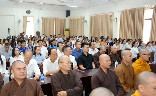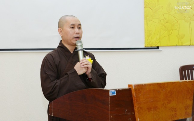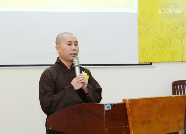 Tại đây, Thượng tọa Thích Giác Hoàng đã giới thiệu khái quát về tổ chức, hoạt động giảng dạy và công tác đào tạo của khoa Phật học từ xa. Theo đó, chương trình đào tạo trong 4 năm gồm 129 tín chỉ, gồm các môn giáo dục đại cương và các môn Kinh, Luật, Luận Phật giáo.