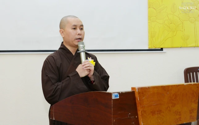 Dịp này, Đại đức Thích Lệ Ngôn, Đại đức Thích Giác Thọ cũng chia sẻ thêm những thông tin cần thiết, giải đáp thắc mắc và khích lệ tinh thần học tập của các tân học viên.
