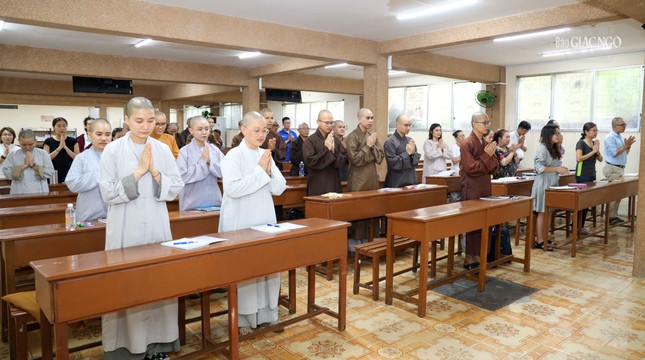 Sau lễ khai giảng, các học viên đã có buổi học đầu tiên dưới sự hướng dẫn của Đại đức TS.Thích Nguyên Tấn.