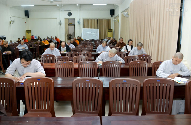 Chứng minh lễ khai mạc kỳ thi có chư tôn đức Phó Viện trưởng Học viện Phật giáo VN tại TP.HCM: Hòa thượng Thích Tâm Đức, Thượng tọa Thích Phước Đạt, Thượng tọa Thích Quang Thạnh (kiêm Tổng Thư ký); Đại đức Thích Giác Thọ, Trưởng phòng Hành chánh; Đại đức Thích Quảng Lạc, Phó Trưởng phòng Sau đại học.