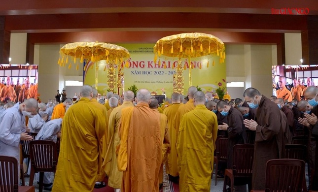 Sáng nay 22-9, tại đại giảng đường thuộc tòa chánh điện Học viện Phật giáo VN tại TP.HCM (cơ sở II, xã Lê Minh Xuân, huyện Bình Chánh), Hội đồng Điều hành Học viện đã tổ chức tổng khai giảng năm học 2022-2023, giới thiệu các khoa cho tân sinh viên khóa XVII.