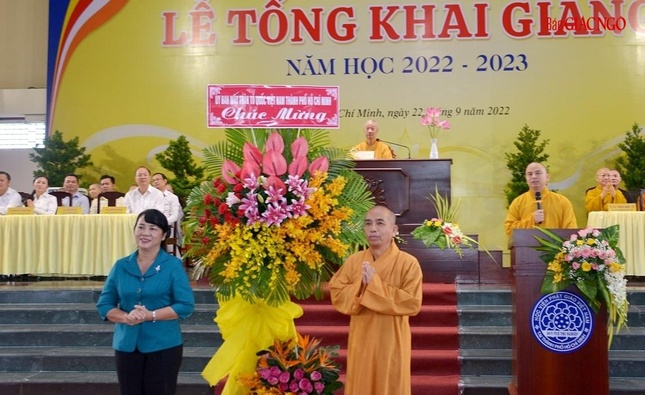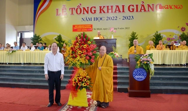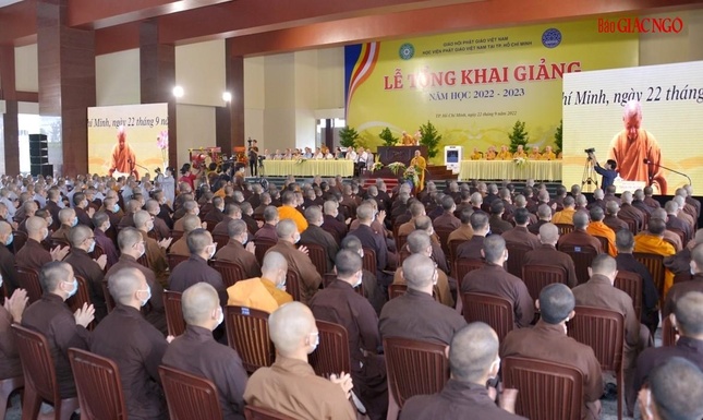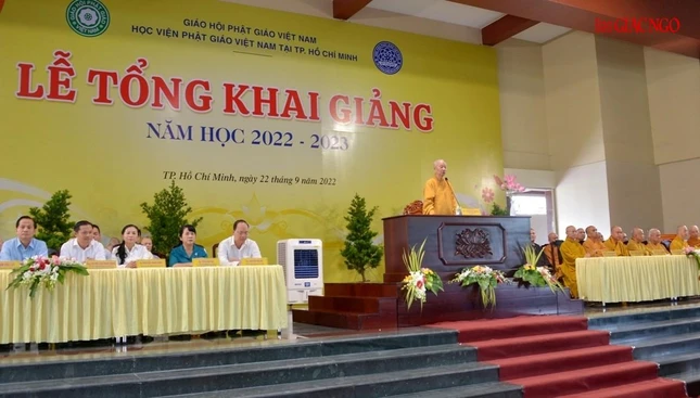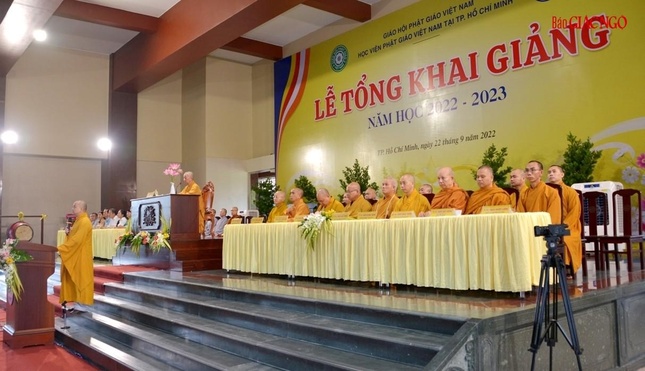Quang cảnh lễ khai giảng năm học mới của Học viện Phật giáo VN tại TP.HCM sáng 22-9-2022 |