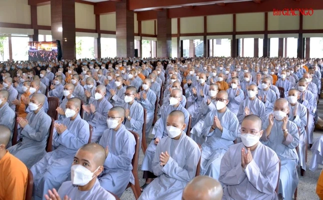 GNO - Trưởng lão Hòa thượng Thích Trí Quảng, Quyền Pháp chủ GHPGVN, Viện trưởng Học viện đã quang lâm chứng minh, có lời huấn thị tại buổi lễ khai giảng năm học mới 2022-2023 trước hơn 2.600 Tăng Ni sinh viên các khóa.