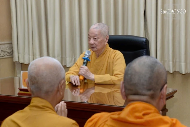 Nhân đây, Đại lão Hòa thượng Viện trưởng đã chỉ dạy Hội đồng Điều hành và tập thể giảng viên cùng nhân viên Học viện hỗ trợ chung tay lo cho công tác tổ chức Đại lễ Vesak 2025 tại cơ sở II (H.Bình Chánh) được chu toàn.