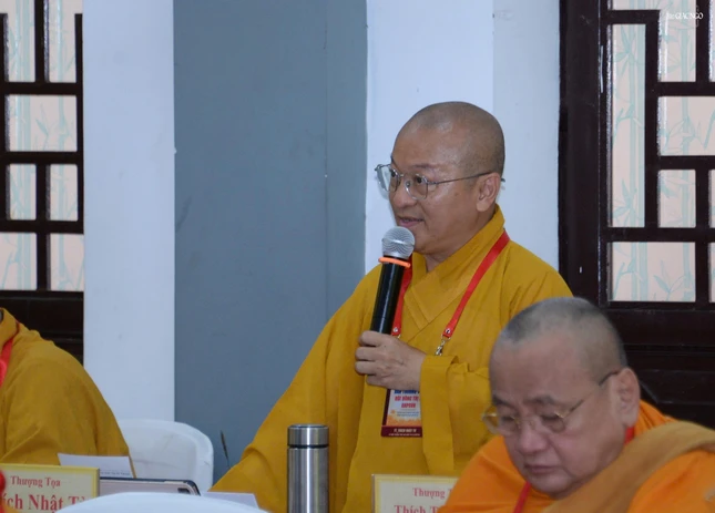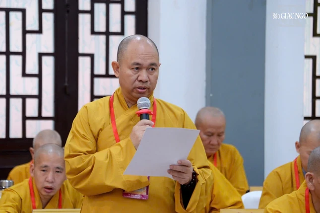 Thượng tọa Thích Đức Thiện báo cáo tại hội nghị