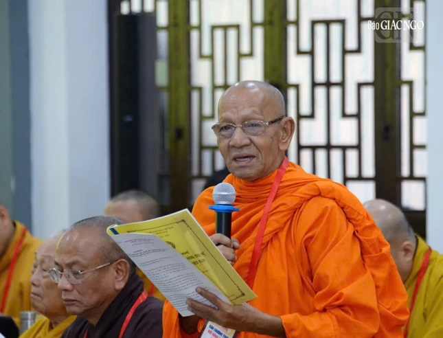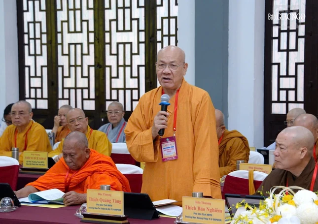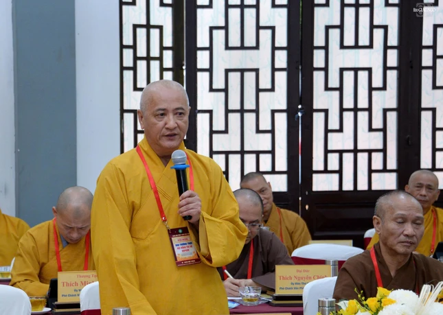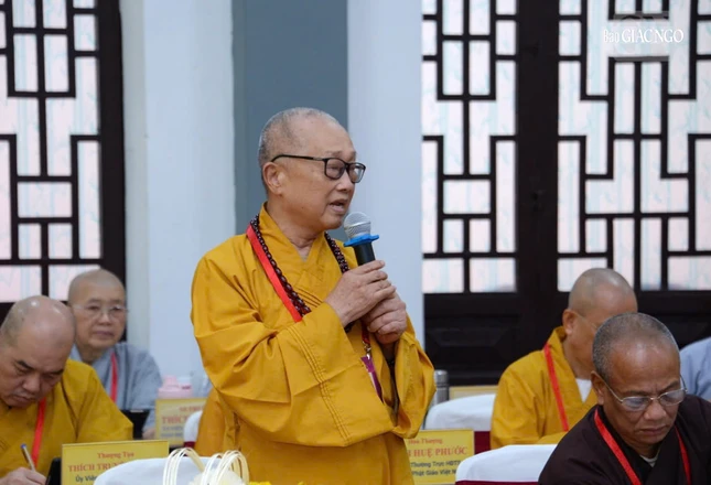 Hòa thượng Thích Bảo Nghiêm phát biểu đóng góp tại hội nghị