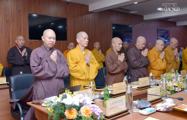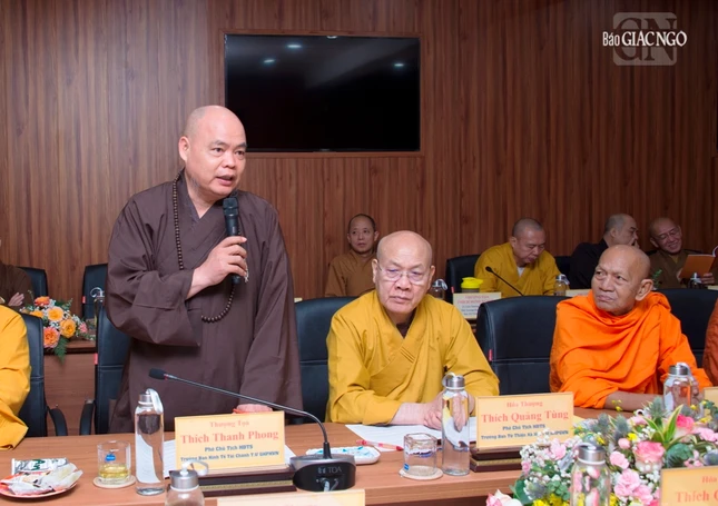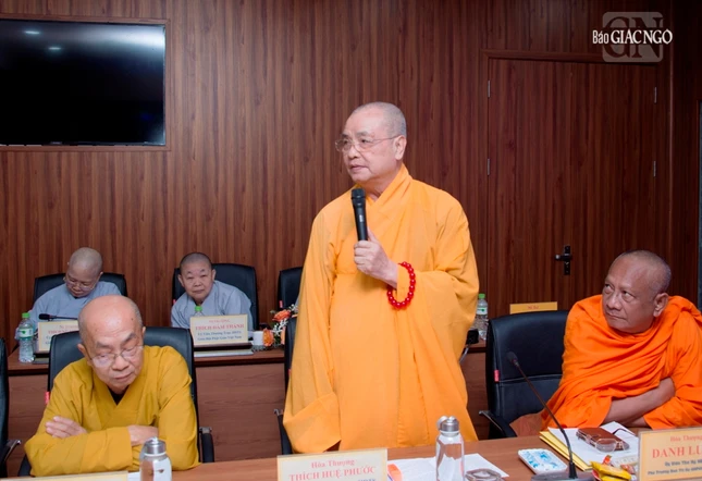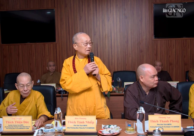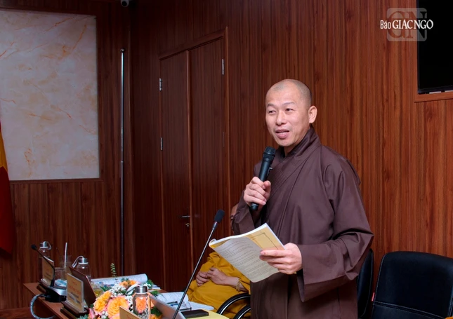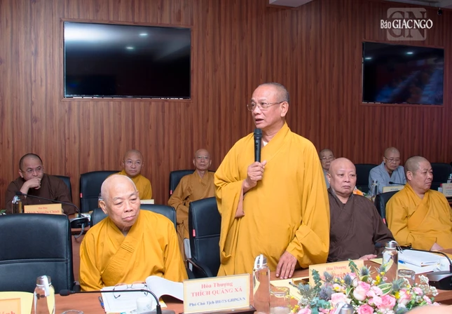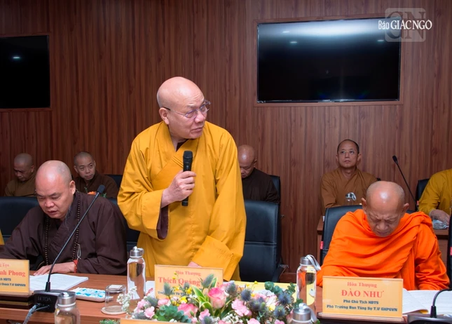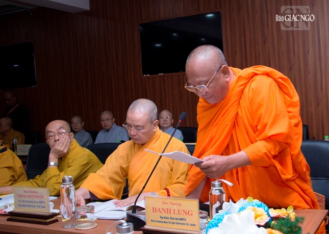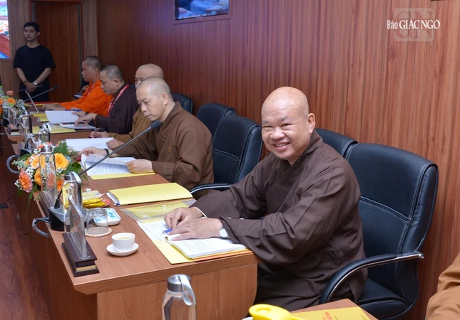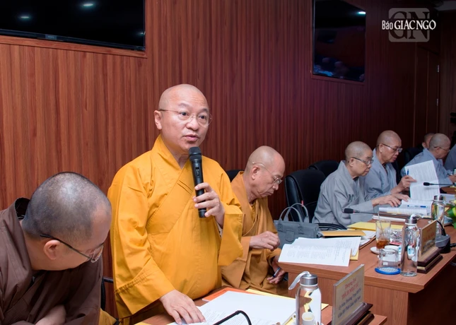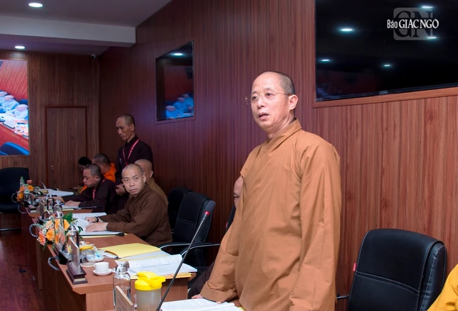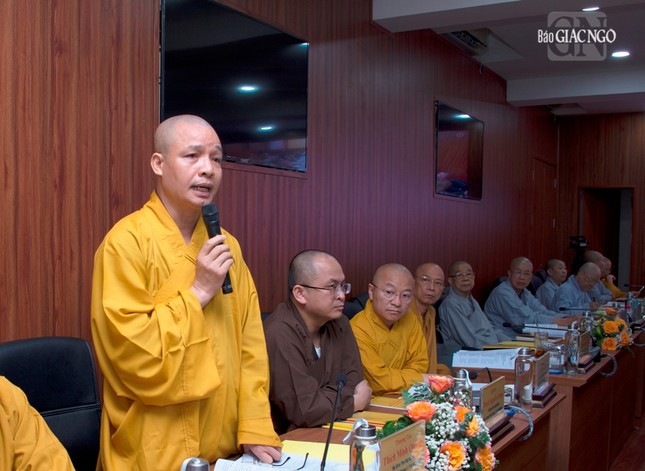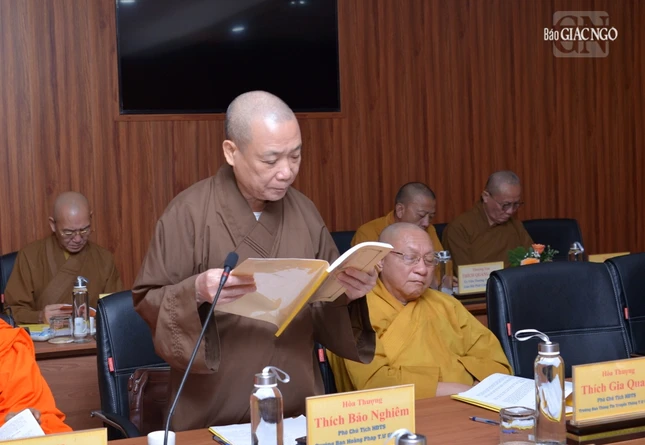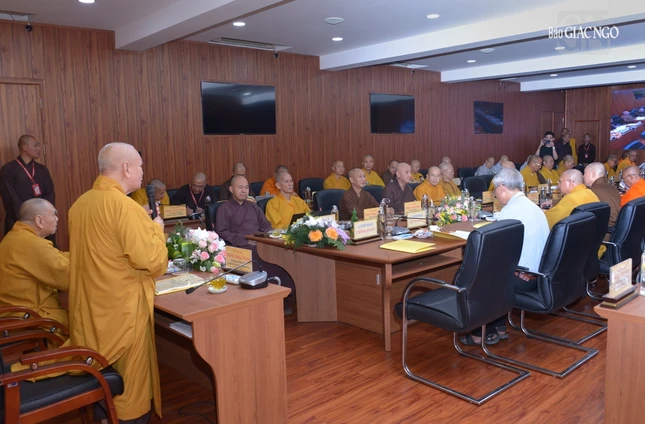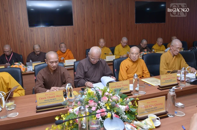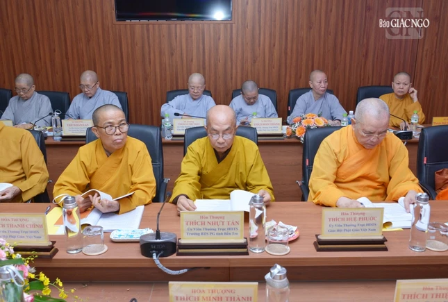 Thượng tọa Phó Chủ tịch kiêm Tổng Thư ký Hội đồng Trị sự cũng báo cáo tiến độ triển khai xây dựng Trung tâm Hội nghị Phật giáo quốc tế của GHPGVN tại xã Tân Kiên, H.Bình Chánh, TP.HCM nhằm chuẩn bị cho Đại lễ Vesak Liên Hiệp Quốc 2025 và phục vụ tiếp đón các đoàn Phật giáo quốc tế đến thăm GHPGVN; Thượng tọa Thích Nhật Từ, Ủy viên Thường trực Hội đồng Trị sự trình đề án đăng cai tổ chức Đại lễ Vesak Liên Hợp Quốc 2025, dự kiến tổ chức tại TP.HCM.