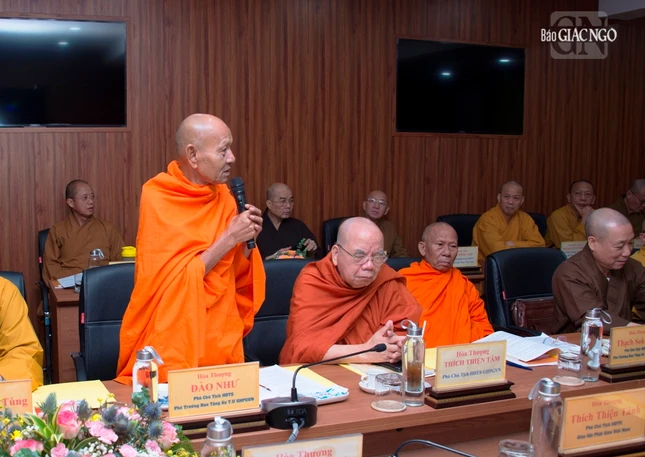 Hòa thượng Thích Huệ Thông, Phó Chủ tịch Hội đồng Trị sự kiêm Trưởng ban Pháp chế T.Ư trình dự thảo chương trình hoạt động của GHPGVN 6 tháng cuối năm 2023 gồm 13 chương trình hoạt động trọng điểm về mặt tổ chức, hành chính như: Triển khai Nghị quyết Ban Thường trực Hội đồng Trị sự, Nghị quyết Đại hội IX và chương trình Phật sự nhiệm kỳ 2022-2027 của GHPGVN; Triển khai Hiến chương GHPGVN tu chỉnh lần thứ VII; Triển khai Quy chế hoạt động của Ban Thường trực Hội đồng Trị sự, Ban Trị sự cấp tỉnh thành, quận huyện và Quy chế hoạt động 13 Ban, Viện T.Ư; Tiến hành số hóa công tác hành chính văn phòng GHPGVN; Hợp tác trao đổi giữa GHPGVN với các tổ chức quốc tế và các Hội Phật tử VN ở nước ngoài; Tổ chức Hội nghị Ban Thư ký ABCP và Hội nghị Thượng đỉnh Phật giáo Việt Nam - Lào - Campuchia năm 2023; Hoàn tất dự thảo Quy chế hoạt động của Ban Quản trị tự viện theo Hiến chương GHPGVN tu chỉnh lần VII; Hoàn tất đề án tổng thể Đại lễ Vesak Liên Hiệp Quốc năm 2025; Triển khai xây dựng Trung tâm Hội nghị Phật giáo quốc tế GHPGVN; Hỗ trợ các Ban, Viện T.Ư, Phân ban, Phân viện triển khai thực hiện các hoạt động Phật sự; Giao ban Thư ký Hội đồng Trị sự nghiên cứu các vấn đề đặt ra tại hội nghị giao ban; Giao Ban Thư ký chuẩn bị kế hoạch, nội dung cho công tác tổ chức Hội nghị lần 3, khóa IX GHPGVN, cùng chương trình hoạt động Phật sự cụ thể của 13 Ban, Viện T.Ư trong 6 tháng cuối năm 2023.