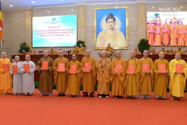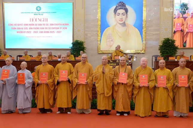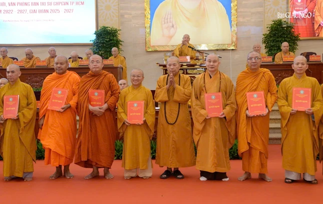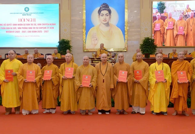 Tại hội nghị, Thay mặt Ban Thường trực Hội đồng Trị sự, Thượng tọa Thích Minh Nhẫn, Ủy viên Thư ký Hội đồng Trị sự, Phó Văn phòng II T.Ư đã thông qua Quyết định số 340/QĐ-HĐTS ngày 30-6-2025 của Hội đồng Trị sự về việc công cử nhân sự chủ chốt và phê chuẩn danh sách nhân sự Ban Trị sự GHPGVN TP.HCM nhiệm kỳ 2022-2027 gồm Ban Chứng minh 25 vị, Ban Cố vấn: 3 vị; Ban Trị sự gồm 225 thành viên, trong đó Ban Thường trực: 86 vị, Ủy viên: 130 vị và Ủy viên dự khuyết: 9 vị.