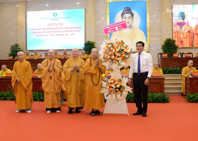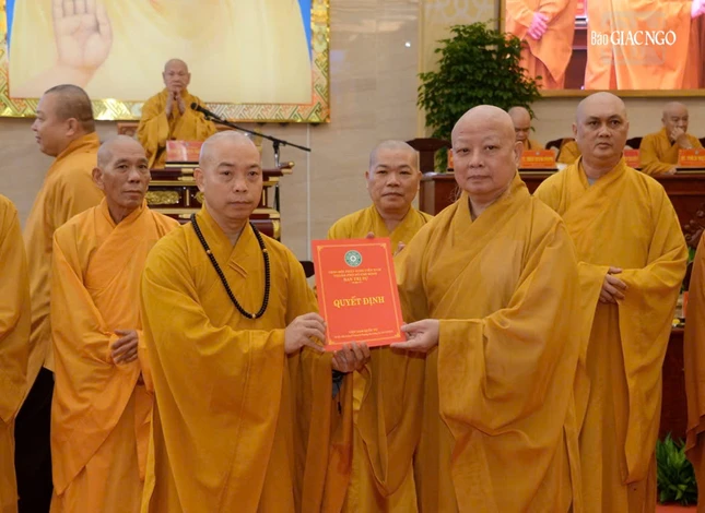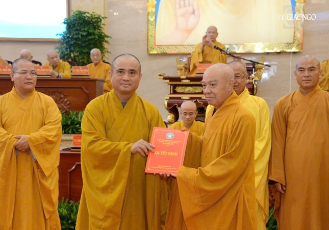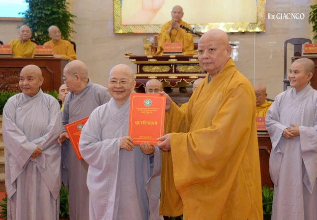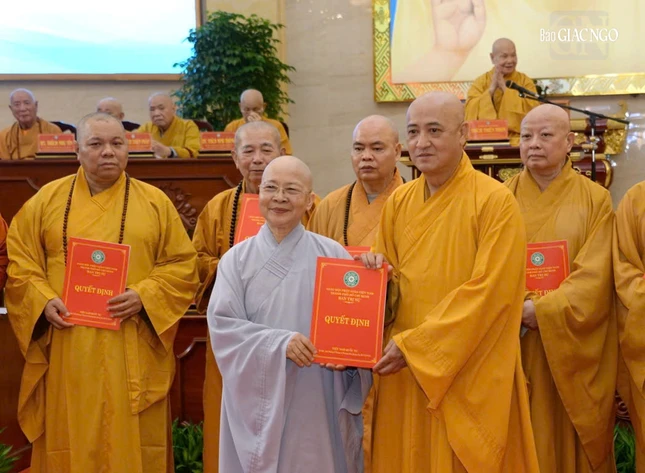 Tại hội nghị cũng công bố quyết định bổ sung Ni trưởng Thích nữ Từ Nhẫn, Trưởng Phân ban Ni giới TP.HCM làm Phó Trưởng ban Trị sự.