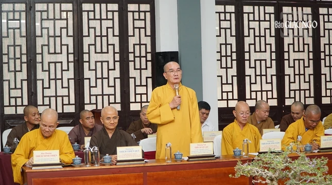 Chư tôn đức chủ tọa hội nghị giao ban gồm Hòa thượng Thích Huệ Thông, Phó Chủ tịch Hội đồng Trị sự, Trưởng ban Pháp chế T.Ư; Thượng tọa Thích Phước Nguyên, Phó Tổng Thư ký Hội đồng Trị sự kiêm Chánh Văn phòng 2 T.Ư; Thượng tọa Thích Minh Nhẫn, Ủy viên Thư ký Hội đồng Trị sự, Phó Văn phòng 2 T.Ư, cùng các vị tôn đức Văn phòng 2, đại diện Ban Pháp chế T.Ư, Ban Kiểm soát T.Ư; chư vị đại diện Ban Trị sự TP.HCM, Long An, Vĩnh Long, cùng đại diện các cơ quan chức năng của 3 tỉnh thành đã trao đổi, thảo luận các vấn đề còn vướng mắc, khó khăn, tồn đọng tại 3 tỉnh thành gồm: TP.HCM, Long An, Vĩnh Long làm sáng rõ nhiều vấn đề, có những góp ý cũng như đề xuất phương án giải quyết cụ thể từng trường hợp trên tinh thần "đồng hành".