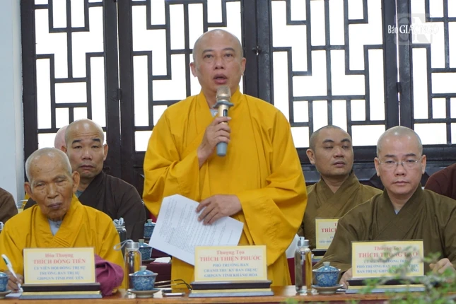 Hòa thượng Thích Khế Chơn, Phó Chủ tịch Hội đồng Trị sự; Thượng tọa Thích Phước Nguyên, Phó Tổng Thư ký Hội đồng Trị sự kiêm Chánh Văn phòng 2 T.Ư; Thượng tọa Thích Minh Nhẫn, Ủy viên Thư ký Hội đồng Trị sự, Phó Văn phòng 2 T.Ư chủ tọa hội nghị giao ban; cùng tham dự của chư tôn đức Văn phòng 2 T.Ư, đại diện Ban Pháp chế T.Ư, Ban Kiểm soát T.Ư, chư tôn đức 4 đơn vị Ban Trị sự GHPGVN tỉnh và lãnh đạo các cơ quan chức năng của 4 tỉnh thành: TP.Đà Nẵng, Bình Định, Khánh Hòa và Phú Yên.