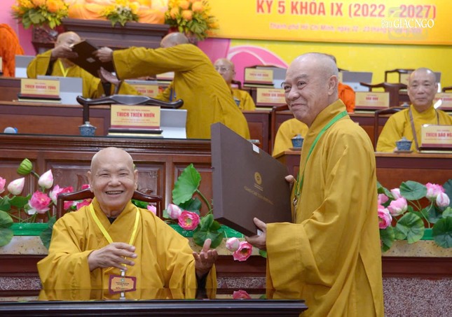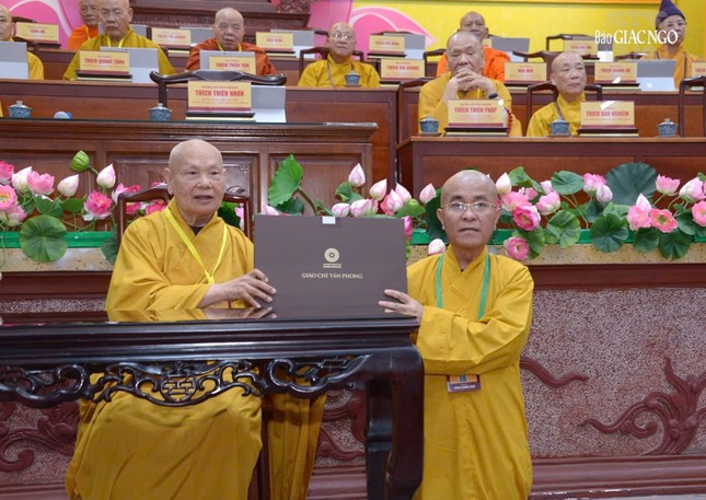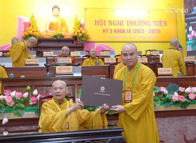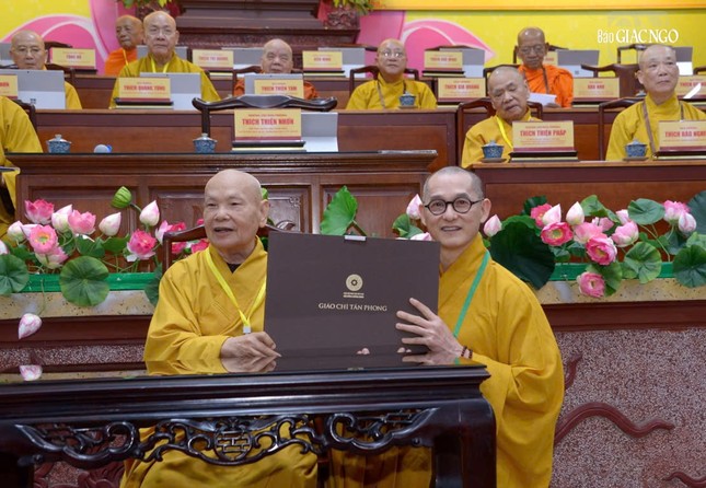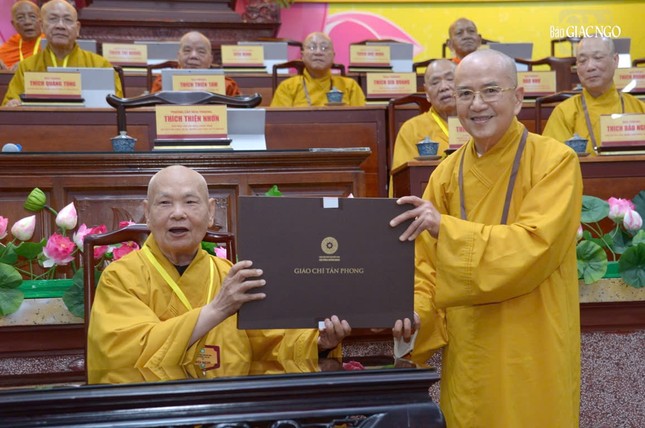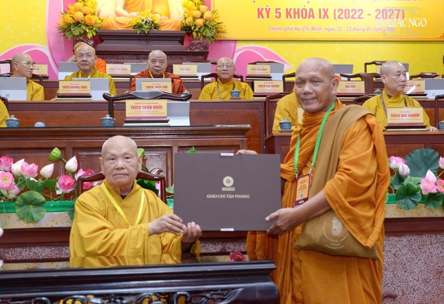 Trưởng lão Hòa thượng Thích Thiện Nhơn, Phó Pháp chủ Hội đồng Chứng minh, Chủ tịch Hội đồng Trị sự kiêm Trưởng ban Tăng sự T.Ư trao Giáo chỉ tấn phong (gồm 938 vị Tăng Ni) đến lãnh đạo 29 đơn vị Ban Trị sự GHPGVN tỉnh, thành đón nhận.