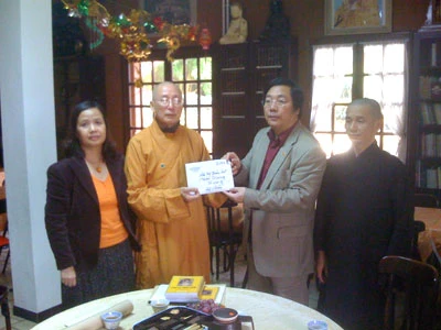 nhận tiền ủng hộ của Hội Phật tử VN tại Pháp