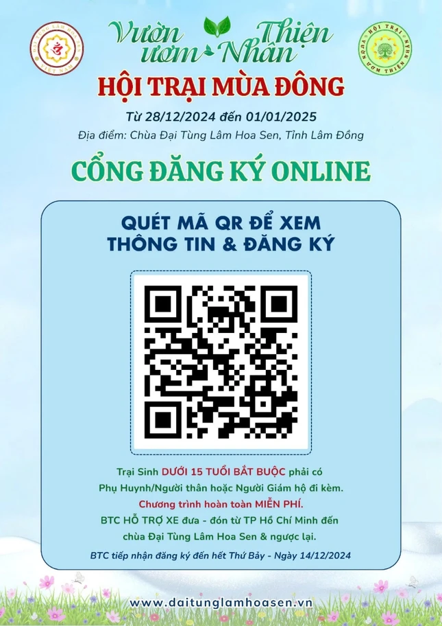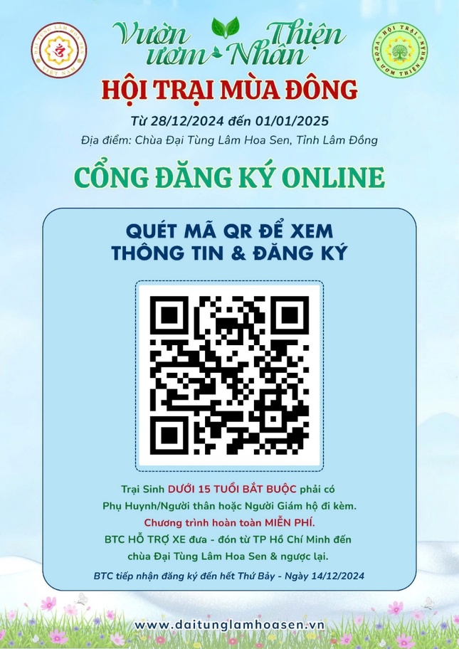 Hội trại dành cho Thanh thiếu niên từ 11đến 22 tuổi (học sinh dưới 15 tuổi bắt buộc phải có phụ huynh hoặc người thân, người giám hộ đi cùng).