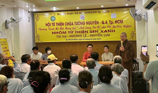 Theo đó, Hội Từ thiện Chùa Tuờng Nguyên tổ chức chương trình “Ánh sáng từ bi” cho 100 người nghèo bị đục thuỷ tinh thể được phẫu thuật miễn phí bằng phương pháp phaco kính mềm, trị giá mỗi ca là 1,5 triệu đồng. Với tổng trị giá 150 triệu đồng.