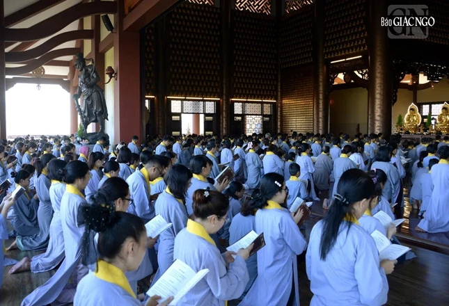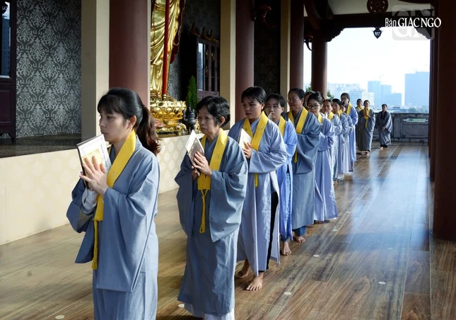 Trước đó, hội chúng đã được hướng dẫn oai nghi, ứng xử căn bản của người Phật tử nhằm giữ sự trang nghiêm và thanh tịnh cho đạo tràng tu học.