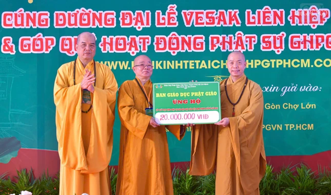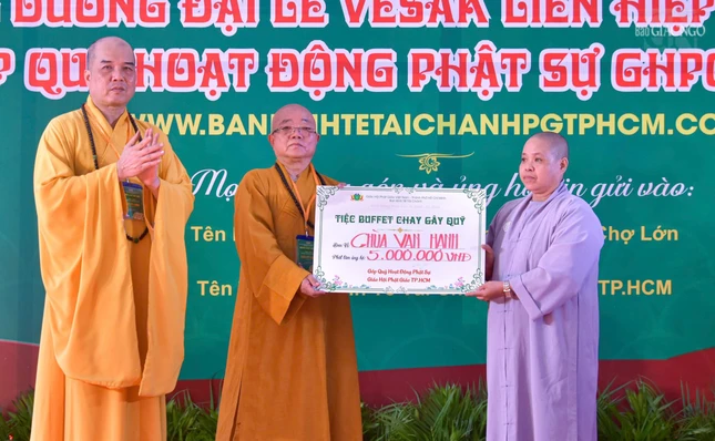 Tại chương trình, Ban Kinh tế - Tài chánh GHPGVN TP.HCM đã trao bảng cúng dường 1 tỷ đồng đến đại diện Ban Trị sự GHPGVN TP.HCM để cúng dường đến Đại lễ Vesak 2025 và Phật đản Phật lịch 2569.