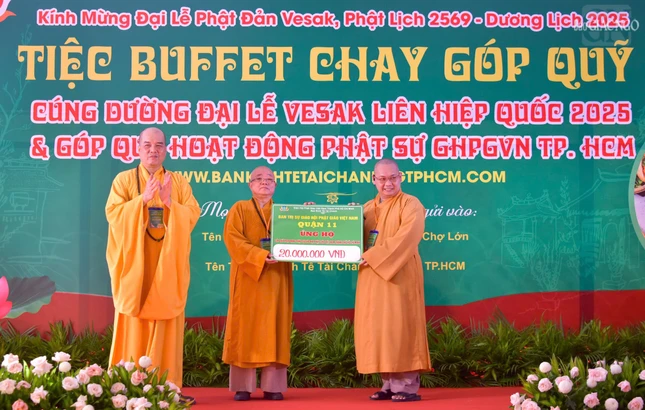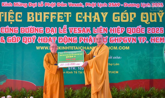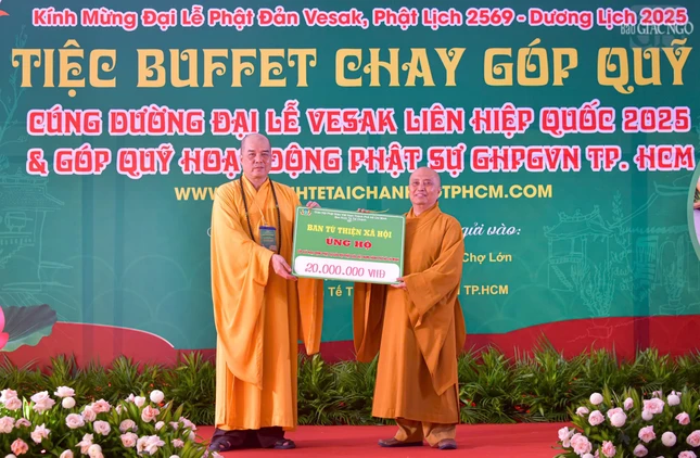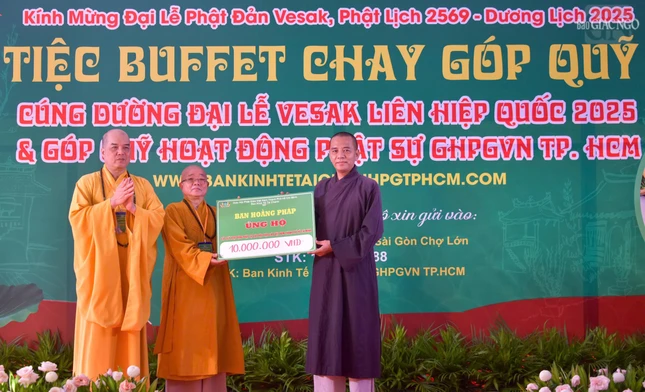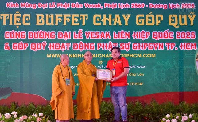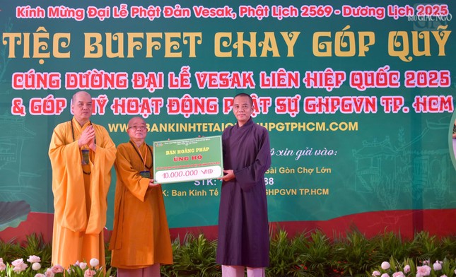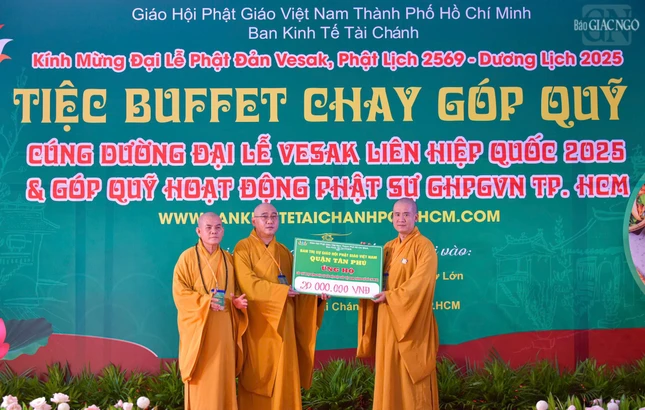 Theo Ban Tổ chức, buffet chay gây quỹ cúng dường Đại lễ Vesak 2025, Phật đản của Phật giáo TP.HCM được sự ủng hộ tham dự của hơn 2.000 Tăng Ni, Phật tử, mạnh thường quân, doanh nghiệp.