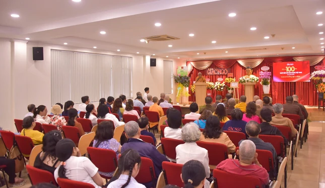Sau nghi thức niệm Phật cầu gia hộ, Thượng tọa Thích Chúc Phú, Phó Thư ký tòa soạn phát biểu chào mừng, ôn lại ý nghĩa và hành trình 100 năm hình thành, phát triển của báo chí Cách mạng Việt Nam