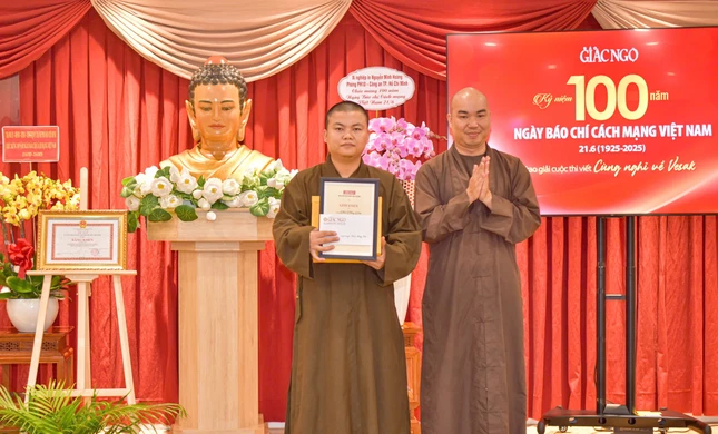 Hòa trong niềm vui ngày họp mặt, Câu lạc bộ Phóng viên - Cộng tác viên Báo Giác Ngộ công bố và trao giải cuộc thi viết “Cùng nghĩ về Vesak” đến các tác giả tham dự. Báo Giác Ngộ cũng chúc mừng Thượng tọa Thích Chúc Phú và Thượng tọa Thích Quảng Tánh được Hội Nhà báo Việt Nam trao tặng Kỷ niệm chương “Vì sự nghiệp báo chí Việt Nam” - phần thưởng cao quý ghi nhận đóng góp cho hoạt động báo chí.