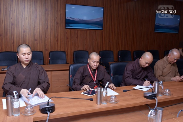 Buổi họp do Thượng tọa Thích Đức Thiện, Phó Chủ tịch kiêm Tổng Thư ký Hội đồng Trị sự chủ trì, cùng chủ tọa có chư vị Phó Chủ tịch Hội đồng Trị sự: Hòa thượng Thích Thiện Tâm, Hòa thượng Thích Huệ Thông và Thượng tọa Thích Thanh Phong; cùng sự tham dự của chư tôn đức Ban Thư ký Hội đồng Trị sự, Hội đồng Điều hành Học viện Phật giáo VN tại TP.HCM, Văn phòng I, Văn phòng II T.Ư, Ban Trị sự GHPGVN TP.HCM...