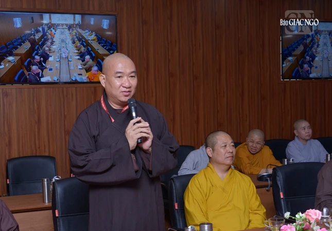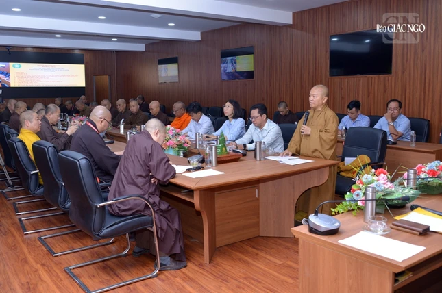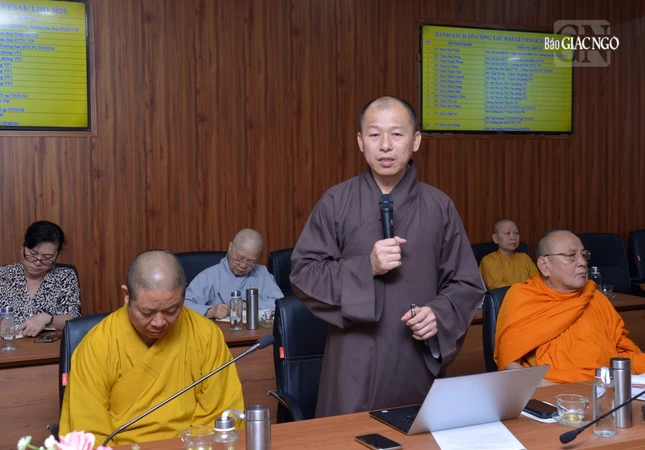 Thượng tọa cũng cho biết mục tiêu của buổi họp nhằm thảo luận, thống nhất các nội dung quan trọng liên quan công tác tổ chức Đại lễ Vesak Liên Hiệp Quốc 2025, cùng thành lập Tổ Công tác Vesak thuộc Giáo hội để tham mưu, trình lên Trưởng lão Hòa thượng Phó Pháp chủ, Chủ tịch Hội đồng Trị sự và Ban Thường trực Hội đồng Trị sự.