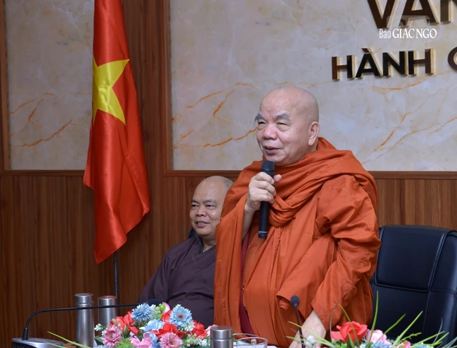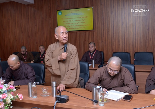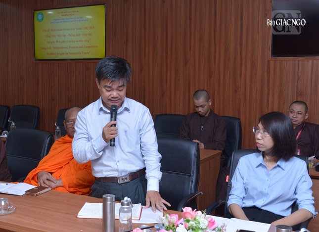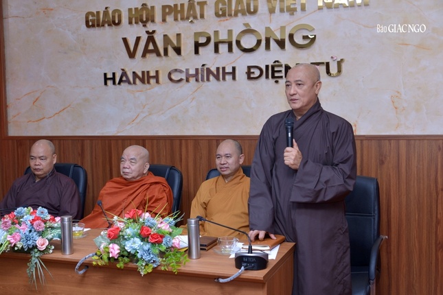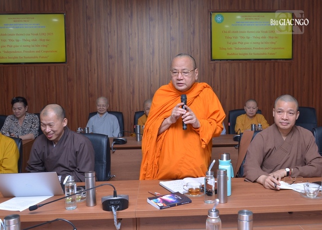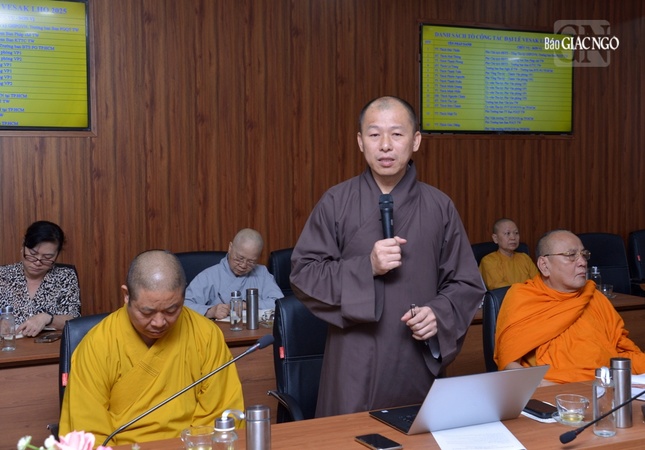 Phát biểu khai mạc tại buổi họp, Thượng tọa Thích Đức Thiện cho biết buổi họp liên quan đến công tác đăng cai tổ chức Vesak Liên Hiệp Quốc 2025 tại TP.HCM, đây là Đại lễ Vesak lần thứ 4 do GHPGVN đăng cai tổ chức. Đại lễ Vesak lần này được GHPGVN đăng cai tổ chức tại TP.HCM, đặc biệt thể hiện sự đồng hành của Phật giáo Việt Nam với dân tộc, với phương châm “Đạo pháp - Dân tộc - Chủ nghĩa xã hội” trong việc hướng đến chào mừng Kỷ niệm 50 năm ngày giải phóng miền Nam, thống nhất đất nước.