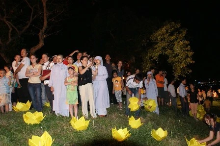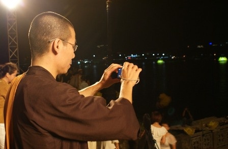 Dưới đây là một số hình ảnh do PV Dân Trí ghi lại tại buổi lễ thắp sáng sen "khổng lồ" trên sông Hương chào mừng Tuần lễ Phật đản tại Huế năm 2011.
