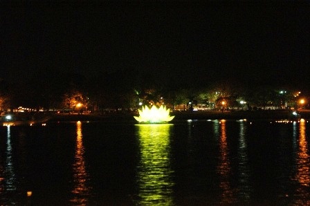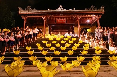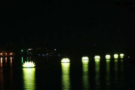 Buổi lễ diễn ra hết sức trang nghiêm và long trọng. Đúng 20h, 7 bông sen "khổng lồ" đồng loạt tỏa sáng trên sông. Bên cạnh đó, 1.000 bông sen nhỏ được thắp nến trang trí tại Nghinh Lương Đình làm rực rỡ thêm trong buổi lễ.