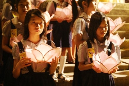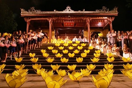 Các bạn trẻ Huế trên tay cầm đèn nến hoa sen lung linh
