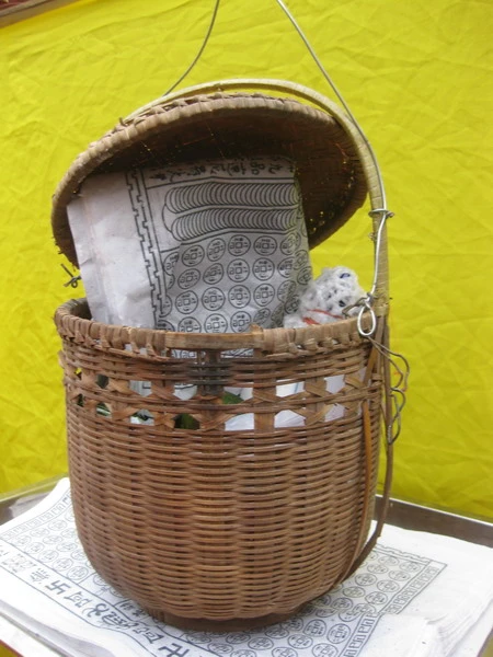 Giỏ đựng lễ vật treo trên đầu câu Nêu