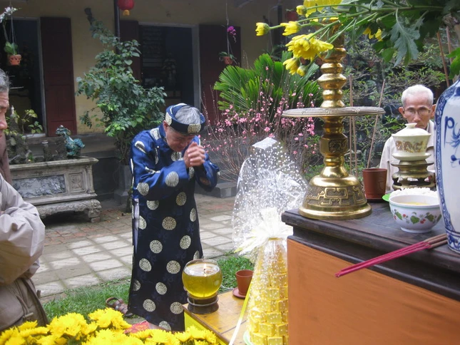 Ông Vĩnh Cao, một người Hoàng phái cử hành lễ "Lên Nêu"