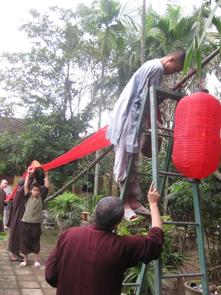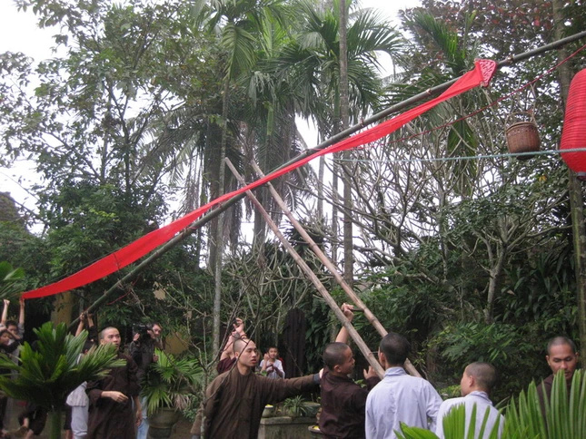 Chư Tăng chùa Diệu Đế cùng dựng Nêu