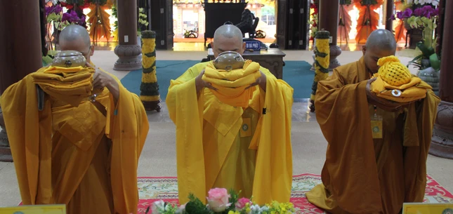 Chiều cùng ngày, vào lúc 14g sẽ diễn ra lễ tấn đàn truyền giới cho các giới tử thọ Thập thiện, Bồ-tát giới, nhiên hương cúng dường và bế mạc giới đàn.